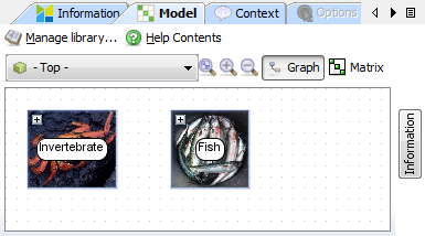 What goes on here? Select each arrow and see what the Information panel says. When clicking on the arrow from River to Fish, we see that River will supply Fish with data on lead concentration and river temperature - this is why we added River.