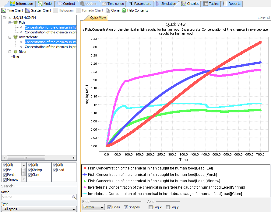 Go back to the time series screen. The fish model should no longer ask you for chemical concentrations in invertebrates.