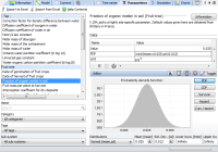- In the list of parameters, select the parameter Fraction of organic matter in soil. The Data table will now display the values of the parameter. The PDF for the parameter is a normal distribution with a mean value of 0.025 and a standard deviation of 0.012.